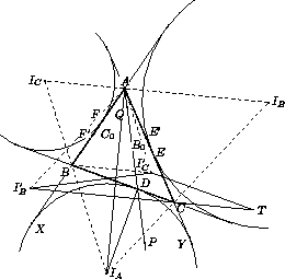 Пусть B0, C0 – середины сторон AC, AB соответственно, σA – третья вневписанная окружность, P и Q – точки пересечения ωB и ωC. Положим AB = c,