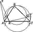 Заметим, что поскольку ∠ARP < ∠ARP + ∠QRC = ∠B, то точка X лежит на луче RP (иначе ∠ARP = π – ∠ARX > ∠RAX = ∠B) (см. рис.). Значит,