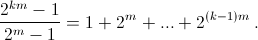 Каждое слагаемое дает остаток 1 при делении на 2m – 1, поэтому