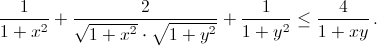 2(1 + x² + y² + x²y²) – (1 + y² + xy + xy³) – (1 + x² + xy + x³y) = (1 – xy)(x – y)² ≥ 0. Согласно неравенству Коши