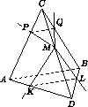Тогда пирамида ABCD симметрична относительно плоскости α – серединного перпендикуляра к AB , поскольку каждый из треугольников ABD и ABC симметричен относительно α . При этой симметрии точки K и L , а также P и Q переходят друг в друга, а точка M переходит в себя; поэтому углы KMQ и LMP переходят друг в друга.
