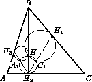 Обозначим через H ортоцентр треугольника ABC, через H1, H2, H3 – основания высот на сторонах BC, CA, AB соответственно, а через A1, B1, C1 – вторые точки пересечения окружностей.