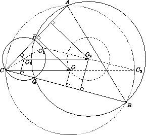 противоположная C , C2 – точка, симметричная C1 относительно центра O второй окружности. Тогда, так как C1P