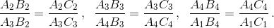 Обозначим Сi (i = 1, 2, 3, 4) основания перпендикуляров, опущенных из точек Аi на плоскость α (см. рис.). Прямоугольные треугольники А1С1В1 и А2С2В1 подобны. Следовательно,