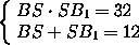 Произведения отрезков пересекающихся хорд равны, поэтому BS· SB1 = AS· SA1= 4· 8 = 32. Кроме того, BB1=AA1= AS+SA1 = 4+8 = 12. Из системы