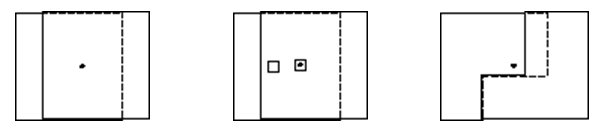 Первый способ. Пусть картонки изначально лежат одна на другой и их края совпадают. Если картонки являются квадратными, перенеся одну вдоль другой и наложив их, легко сложить прямоугольник, но его центр будет лежать внутри обеих (рис. слева). Это можно исправить, заметив, что центр получившегося прямоугольника не совпадает с центром первой квадратной картонки. Поэтому, вырезав небольшую дырочку из первой картонки в центре прямоугольника, мы можем получить решение (рис. в центре).