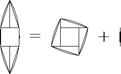Первое решение. Разрезав криволинейный шестиугольник с дугами в качестве сторон, можно сложить криволинейный "квадрат" и линзу (рис.).