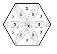 Аудитория имеет форму правильного шестиугольника со стороной 3 м. В каждом углу установлен храпометр, определяющий число спящих студентов на расстоянии, не превышающем 3 м. Сколько всего спящих студентов в аудитории, если сумма показаний храпометров равна 7?