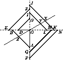 Полученный многоугольник OABEFJKNPQMLIGD и точка O на его границе удовлетворяет условию задачи. Покажем, что прямая XZ делит площадь нашего многоугольника на равные части. Площади трапеций DEFG и MNPQ , расположенных по разные стороны прямой XZ , равны по построению. Эта прямая также делит в одинаковом соотношении площади треугольника OAB и трапеции IJKL (а поскольку площади этих фигур равны по построению, прямая делит каждую из них на части, площади которых соответственно равны площадям частей другой фигуры). В самом деле, треугольники OAB и OJK подобны; кроме того, они равнобедренны, а прямая XZ проходит через вершину каждого из этих треугольников, образуя одинаковые углы с одной из боковых сторон, и, следовательно, делит их площади в одинаковом отношении. То же верно про треугольники OAB и OIL , поэтому прямая XZ делит их площади в том же отношении. Ну а площади частей трапеции IJKL равны разностям площадей соответствующих частей треугольников OJK и OIL . Итак, мы видим, что по разные стороны от прямой XZ оказались части многоугольника соответственно равных площадей, поэтому суммарные площади также равны — прямая действительно делит площадь многоугольника пополам. В случае, если прямая пересекает трапеции DEFG и MNPQ , доказательство строится аналогично. Случаи вертикального и горизонтального расположения секущей прямой являются тривиальными. Как до такого решения можно догадаться? Фактически мы придумали два независимых решения, каждое — для своих двух вертикальных углов координатной плоскости. Причём одно из решений выбрали таким, чтобы нужная по условию задачи точка как раз была на его границе. А затем просто "подогнали края" — так, чтобы решения "цеплялись друг за друга" во всех местах, кроме одного.