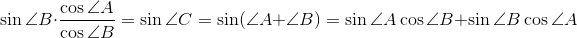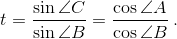 получаем sin²∠A cos²∠B = sin²∠B (1 – cos∠B)²t², или (1 – t² cos²∠B) cos²∠B = (1 – cos²∠B)(1 – cos∠B)²t², откуда