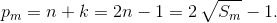S2 = 5, S3 = 10 квадратами не являются, так что m > 4. Заметим, что pm = Sm – Sm–1 = (n – k)(n + k); ввиду простоты pm получаем 1 = n – k,