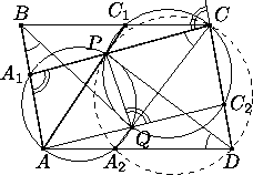 стороны CD и AD в точках C2 и A2 соответственно. Тогда из параллельности AB|| CD и вписанности четырехугольника AA1PQ получаем
