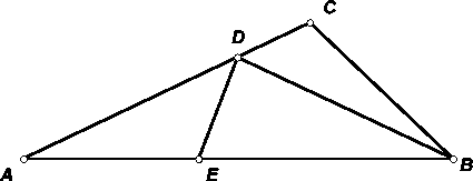 Пусть ∠C ≥ 90° и AC > BC. Возьмём на стороне AC такую точку D, что AD = BD, а на стороне AB такую точку E, что ∠AED = ∠C (это возможно, так как ∠A < 180° – ∠C). По теореме синусов радиусы описанных окружностей треугольников ADE, BDE и BDC равны (см. рис.).