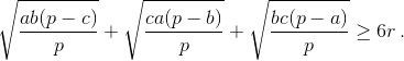 Пусть a, b, c – длины сторон произвольного треугольника; p – полупериметр; r – радиус вписанной окружности. Докажите неравенство