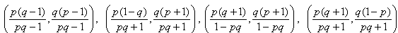 Аффинным преобразованием переведём параллелограмм в квадрат и рассмотрим систему координат, оси которой совпадают с диагоналями квадрата. Будем считать, что стороны четырёхугольника пересекают оси координат в точках (±1, 0), (0, ±1), а точки P, Q имеют координаты (p, 0) и (0, q) соответственно. Тогда стороны четырёхугольника лежат на прямых с уравнениями x/p ± y = 1, ± x + y/q = 1; вершины имеют координаты