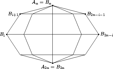 Применим к правильному 2n-угольнику A1...A2n растяжение относительно диагонали AnA2n с коэффициентом k > 1 (см. рис.). Теперь перегнём полученный многоугольник по прямой AnA2n, так чтобы его вершины B1, ..., Bn–1, Bn+1, ..., B2n–1 проецировались в вершины исходного правильного многоугольника. Тогда все прямые BiB2n–i будут параллельны и многогранник, ограниченный треугольниками Bn–1BnBn+1, B2n–1B<2nB1, трапециями BiBi+1B2n–i–1B2n–i и двумя половинами 2n-угольника, будет искомым.