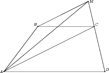 Решение 1:Из условия следует, что ∠BMC = ∠ACD = ∠CDA = ∠BCM. Значит, BM = BC = AB, и ∠BAM = ∠BMA = ∠MAC (см. рис.).