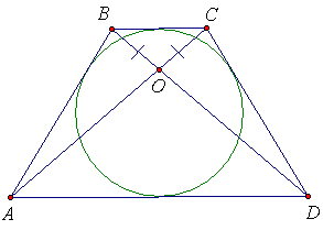 Диагонали AC и BD равнобедренной трапеции ABCD пересекаются в точке O; известно также, что в трапецию можно вписать окружность.