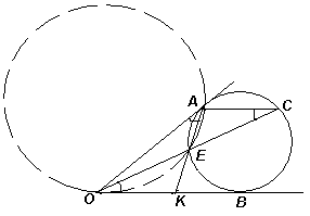 С другой стороны, по свойству касательной и секущей, проведённых из одной точки, KВ² = KА·KЕ. Таким образом, OK = KB.