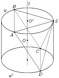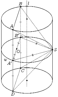 SA'B' пирамиды окружность w и взять прямой круговой цилиндр с направляющей w, то