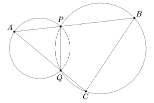 При движении точки A по первой окружности (рис. слева) угол PAQ не меняется. Поскольку угол PAQ равен полуразности дуг BC и PQ, то угловая величина дуги BC постоянна, то есть постоянна длина хорды BC.
