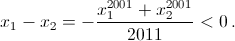 Решение 1:Пусть x1 > 0 – корень уравнения x2011 + 2011x – 1, а x2 > 0 – корень уравнения x2011 – 2011x + 1. Тогда