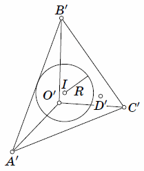 этой проекции, и содержит точку I. Пусть для определённости это треугольник O'A'B'.