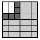 Можно ли квадрат разрезать на 9 квадратов и раскрасить их так, чтобы получились 1 белый, 3 серых и 5 чёрных квадратов, причём одноцветные квадраты были бы равны, а разноцветные квадраты – не равны?