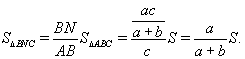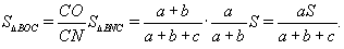 В треугольнике ABC известны стороны BC = a, AC = b, AB = c и площадь S. Биссектрисы BM и CN пересекаются в точке O. Найдите площадь треугольника BOC.