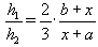 Пусть b > a. Отношение площадей трапеций BMNC и MADN равно 2 : 3, поэтому 3(x + a)h1 = 2(b + x)h2, откуда
