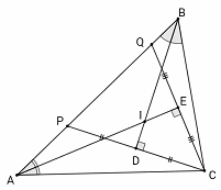 Олимпиадная задача: Центр окружности треугольника PQC и вписанная окружность ABC