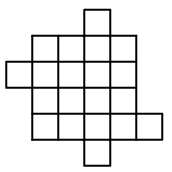 Разрежьте фигуру (см. рисунок) по линиям сетки на четыре равные фигуры.