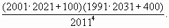 2001·2021 + 100 = (2011 – 10)(2011 + 10) + 100 = 2011² – 10² + 100 = 2011², 1991·2031 = 2011² – 20² + 400 = 2011². Таким образом, числитель равен знаменателю.