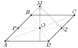 Диагонали параллелограмма ABCD пересекаются в точке O. На продолжении стороны AB за точку B отмечена такая точка M, что MC = MD.