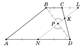 Пусть P – середина BD, L и N – точки пересечения прямой KP с прямыми BC и AD соответственно (см. рис.).