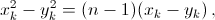 P – Q = (n – 1)((x1 + ... + xn) – (y1 + ... + yn)) = (n – 1)(m – m) = 0.