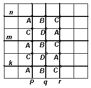 Пусть это не так, и на прямой m находятся узлы более двух цветов, тогда в каком-то месте три узла разных цветов идут подряд. Обозначим эти цвета слева направо через А, В и С (см. рис.).