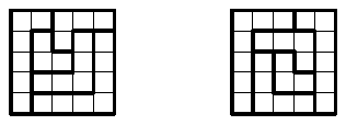Покажите, как разрезать квадрат размером 5×5 клеток на "уголки" шириной в одну клетку так, чтобы все "уголки" состояли из разного количества клеток. (Длины "сторон" уголка могут быть как одинаковыми, так и различными.)