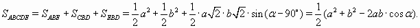 Но по теореме косинусов a² + b² – 2ab cos α = AC² = 1. То есть SABCDE = 0,5.