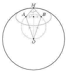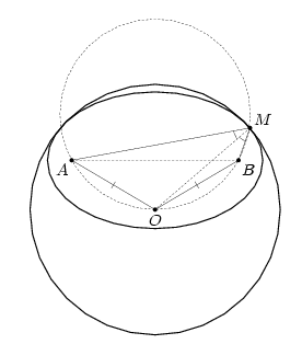 Постройте на окружности точку M, для которой сумма расстояний до точек A и B наименьшая среди всех возможных.
