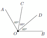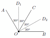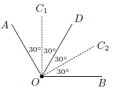 Внутри угла AOB, равного 120°, проведены лучи OC и OD так, что каждый из них является биссектрисой какого-то из углов, получившихся на чертеже. Найдите величину угла AOC, указав все возможные варианты.