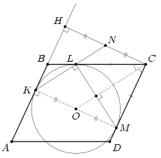 Окружность касается сторон AB, BC, CD параллелограмма ABCD в точках K, L, M соответственно.