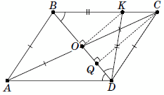 Пусть O – точка пересечения диагоналей параллелограмма. Из условия следует, что AB = AO = OC = CD (см. рис.).