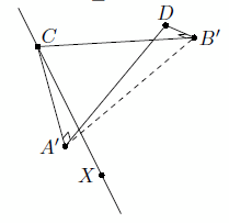 Поскольку DA' ⊥ (XBC),  то ∠DA'C = 90°, аналогично ∠DB'C = 90° (см. рис.). Значит, точки A' и B' лежат на сфере с диаметром DC, поэтому расстояние между ними не превосходит этого диаметра: A'B' < DC. Аналогично A'C' < DB и B'C' < DA. Складывая эти три неравенства, получаем требуемое.