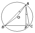 Пусть диагонали АВСD пересекаются в точке Р. Докажем, что АС и BD перпендикулярны. Первый способ. Используем очевидный факт: если АР – высота треугольника АВС, О – центр его описанной окружности, то ∠ОАВ = ∠РАС (рис. слева).
